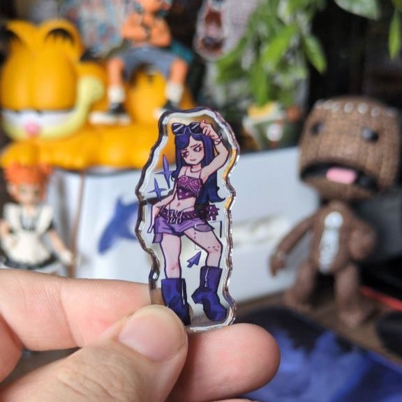 These are pins made with transparent acrylic material and softened edges. Each pin is approximately 50mm in height and 18mm in width, and comes with a metal clasp with a star backing.
