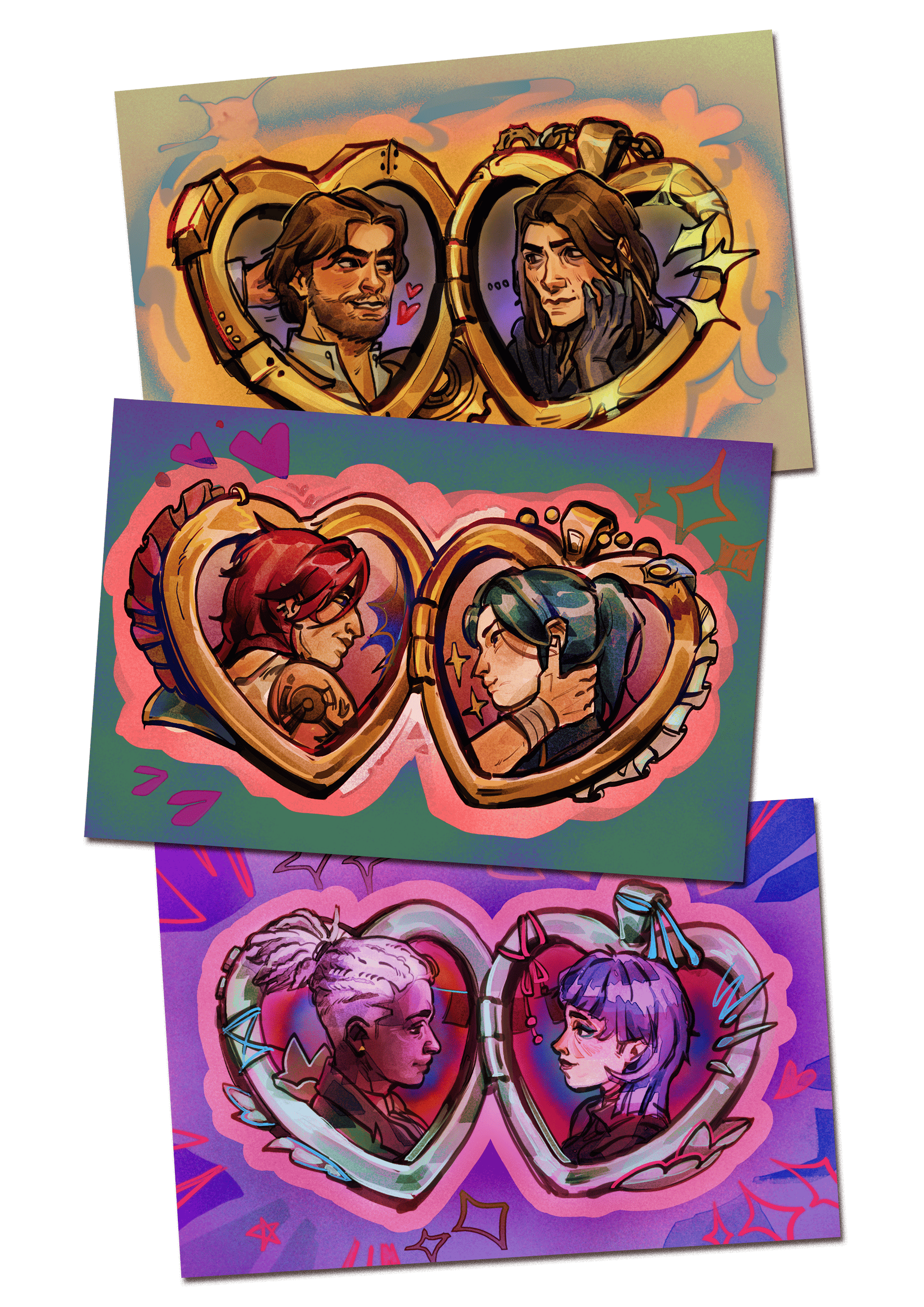 This is an art print trio, made with 310GSM art card with a smooth finish and vibrant colors! Your item will be packaged in a bubble wrap envelope to ensure it gets to you in pristine condition. If you are giving it to someone as a gift, you can always ask for an additional note or packaging details without any additional cost. :)